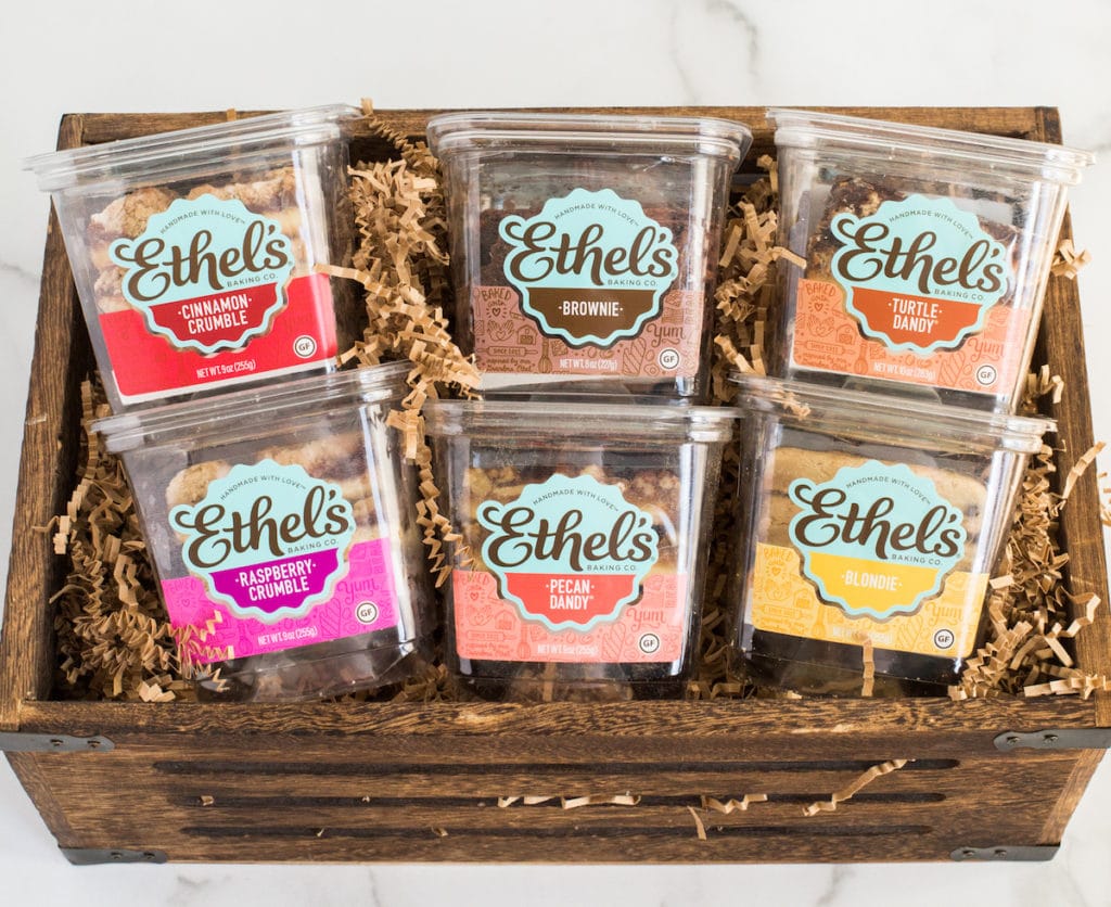 If you have perused Whole Foods, perhaps you’ve seen Ethel’s gluten-free dessert bars. If you haven’t, you should. Ethel’s makes a variety of bars: Pecan Dandy, Blondie, Brownie, Cinnamon Crumble, Raspberry Crumble, Turtle Dandy.