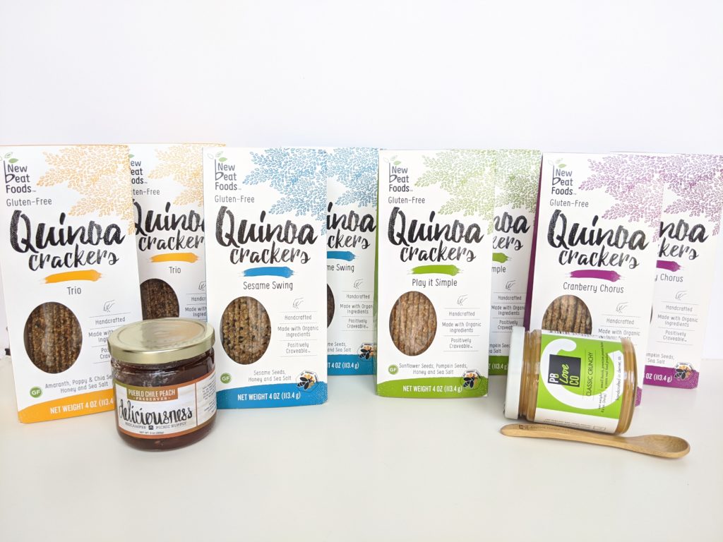 Four winners will each score 8 boxes of quinoa crackers, 1 jar Colorado Artisan nut butter, and 1 jar Colorado Artisan fruit preserves!