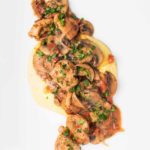 Simultaneously a light and cozy stew, this rich gluten free chicken dinner is served over soft polenta, which you’ll need to prepare separately (heads up!). But it’s equally wonderful with boiled or mashed potatoes or rice.