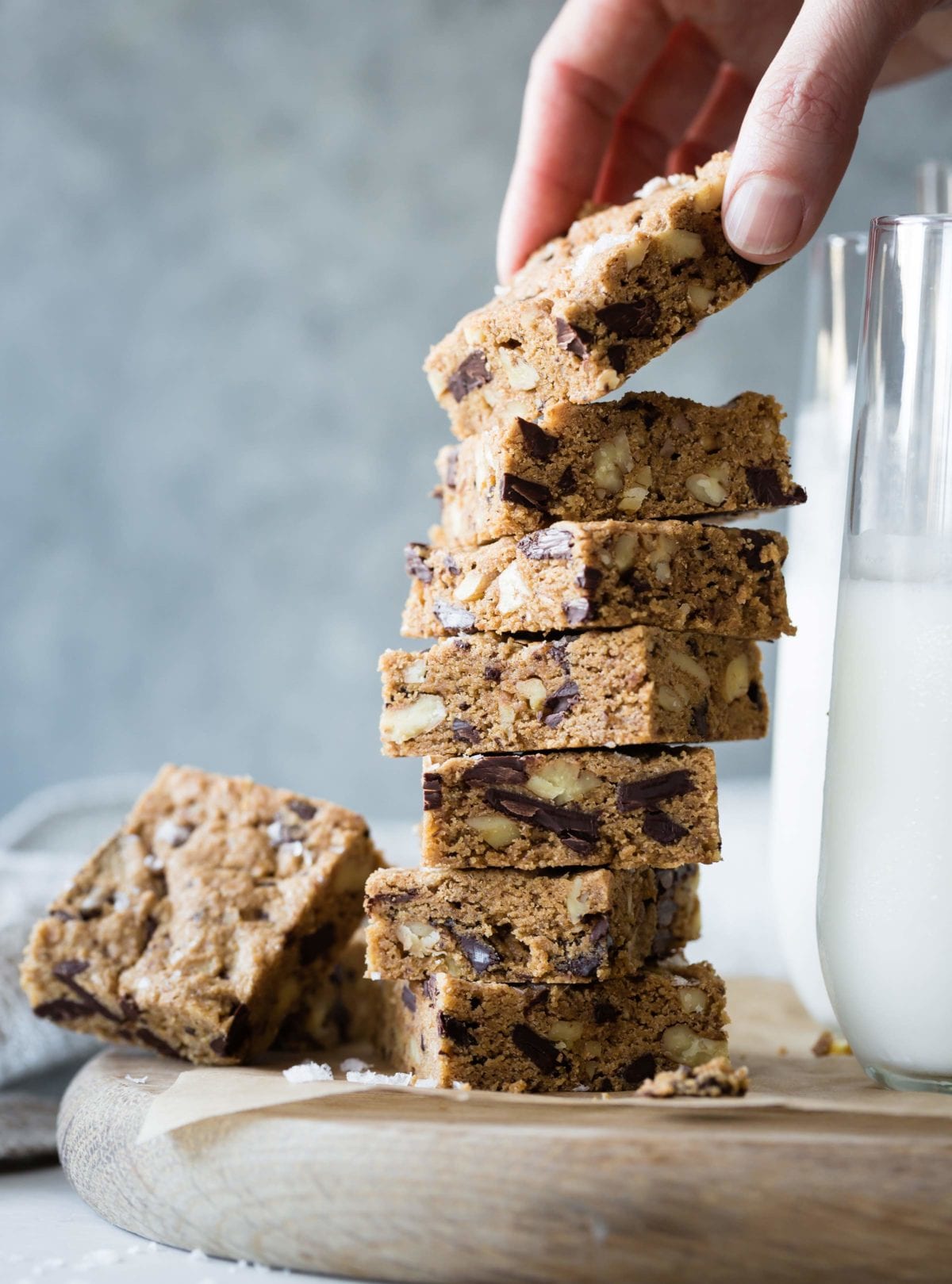 These chewy, chunky squares taste like classic chocolate chip cookies accented with fragrant coconut flour. The high molasses content in organic dark brown sugar keeps these gluten free cookie bars extra tender, and a good dose of salt counters the sweetness.