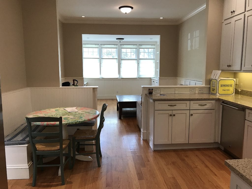 The kitchen has the only dining area in my house; turns out I like the cozy built-in–and, as I mentioned, I use two folding tables to expand it during larger dinner parties. The space is surprisingly accommodating.