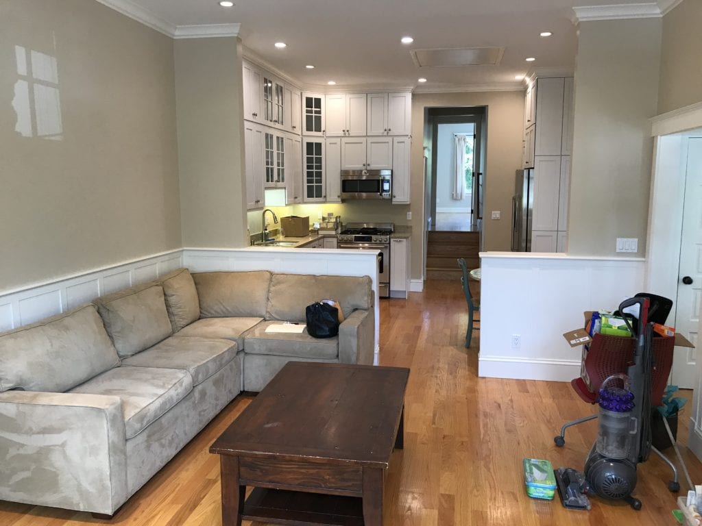 The couch and table came with the house; they made good use of the space and the couch swallowed you up (in a good way), so I kept them until I found just the right replacements.