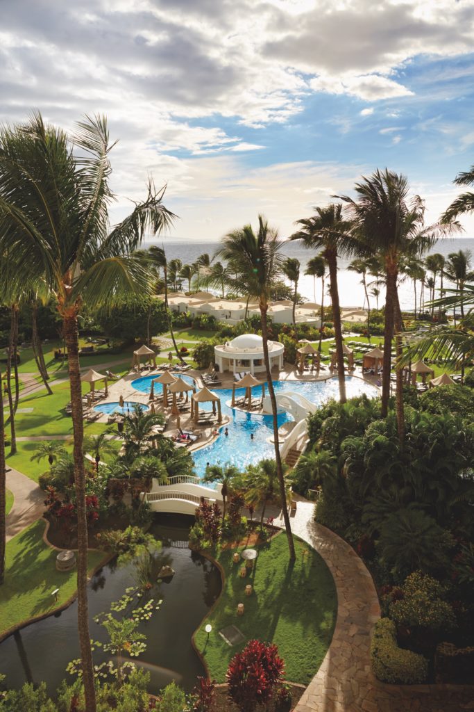 Our favorite family-friendly high-rise resort along bustling Kā‘anapali Beach has all the bells and whistles, including a huge pool with a sandy kid section, waterslides, and a waterfall-flanked cave bar. The grounds are lush with tropical growth and live flamingos, penguins, swans, and talking parrots, the restaurants usually carry gluten-free beer, the gym rules, and there’s a fun luau. maui.hyatt.com