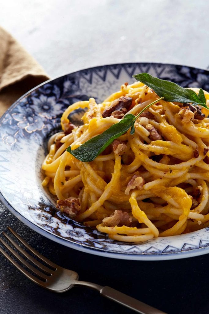 This beauty combines squash and spices with an elegant press-in hazelnut shortbread crust that can be made days in advance. Topped with maple syrup and sour cream-flavored whipped cream and a sprinkle of hazelnuts, it’s a luxe and luscious upgrade to pumpkin pie. Get the recipe