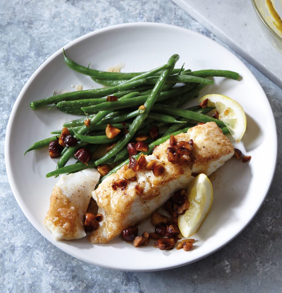 While there’s some cooking done in a skillet along with a sheet pan, the extra cleanup is worth it, as it gets the chicken skin extra crispy, plus the skillet is where you’ll make the light and creamy sauce, too. Get the recipe