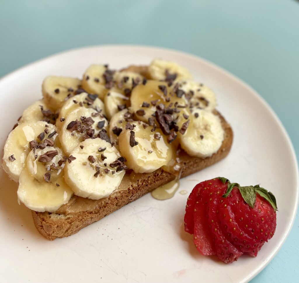 Nut Butter Toast with Banana and Cocoa Nibs