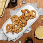 Bake until golden brown, 18 to 22 minutes, rotating the baking sheets halfway through baking. Remove and let the pretzels cool to warm or room temperature and serve with dipping sauce or solo.