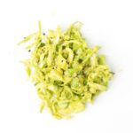 Thinly slice brussels sprouts crosswise until you reach the root. Discard the roots. In a bowl combine avocado, lemon zest and juice, and salt. Massage the brussels sprouts into the avocado dressing. Add a few grinds of pepper and chill, covered, for 30 minutes to let the flavors meld or eat right away.