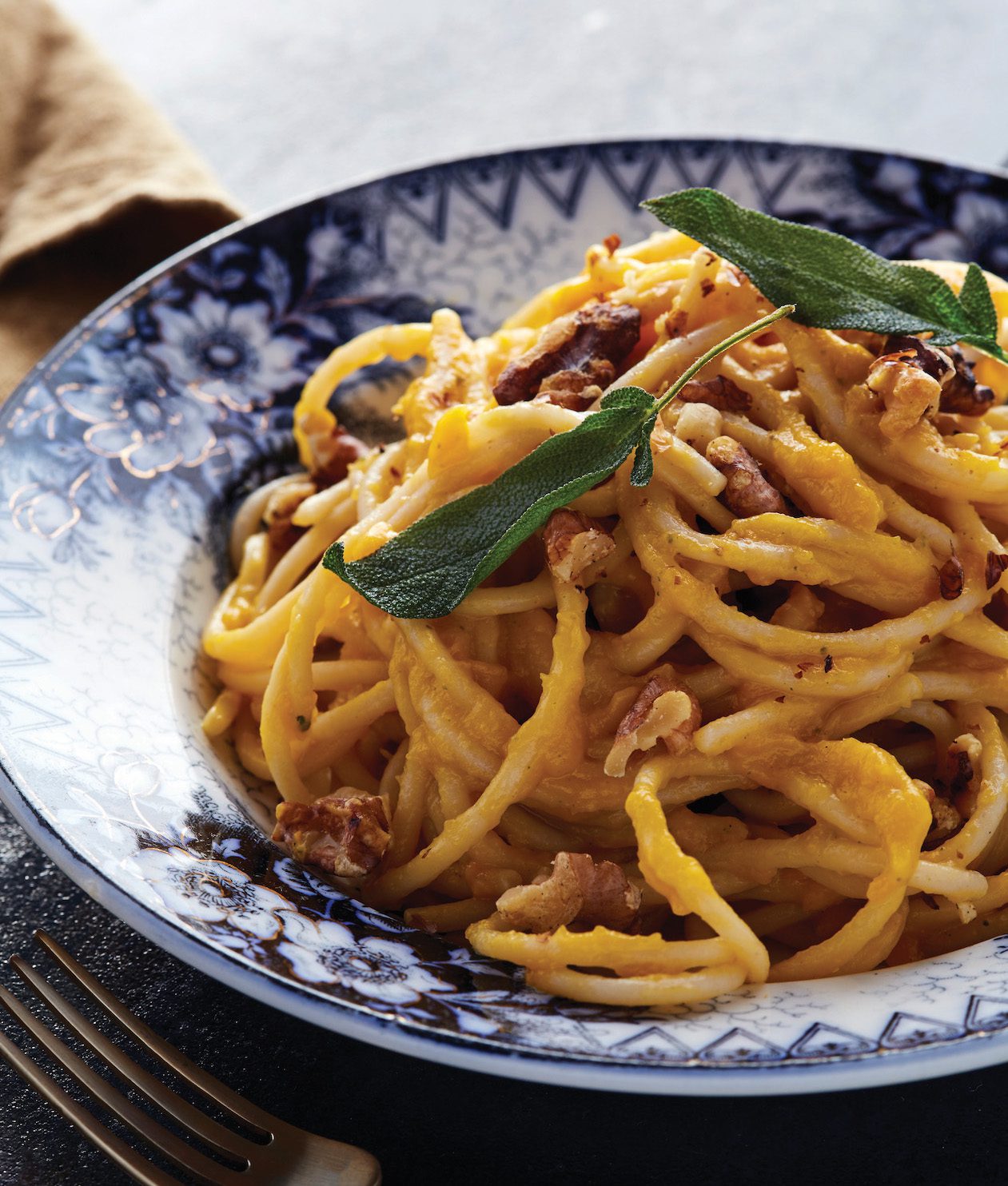Creamy Butternut Squash Spaghetti with Fried Sage and Walnuts