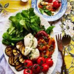 Burrata and Grilled Vegetables with Arugula and Basil Oil