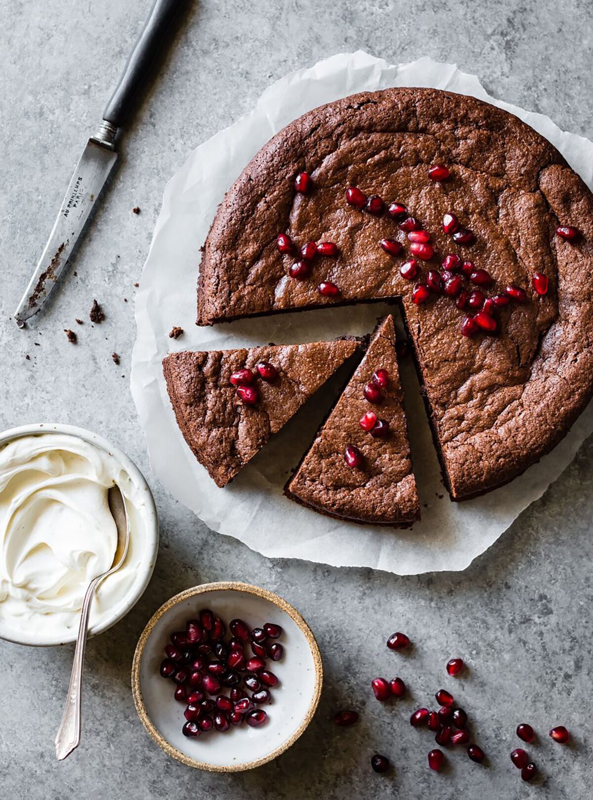 Gluten Free Chocolate Hazelnut Flour Cake with Whipped Mascarpone and Pomegranate Recipe
