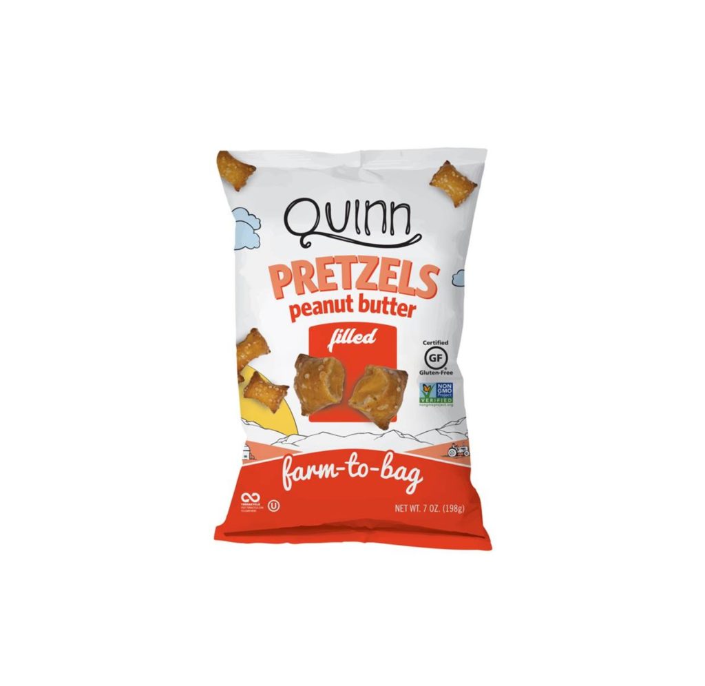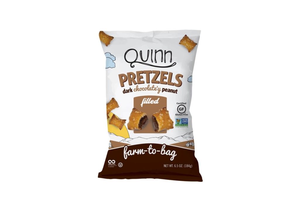 Crunchy, mildly roasted-flavored pretzel nuggets filled with dab of creamy peanut butter; addicting; amazon.com; available nationally at Whole Foods; quinnsnacks.com for store locator