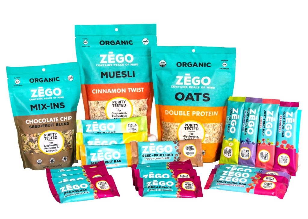 We love Zego for their collection of tasty, nutrient-dense superfood-based breakfast and snack products. We also love their commitment to ingredient excellence: their bars, trail mixes, oats, and more are free of the top 12 allergens, salt, cane sugar, and artificial stuff; their oats are Purity Protocol Gluten Free (no cross-contact from seed-to-table), and they test for glyphosate and other pesticides and toxins for gut health.