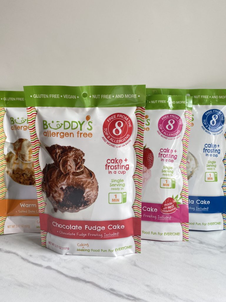 Buddy’s Allergen Free: These convenient, single-serving cake mixes, available in four flavors, come complete with everything you need to make on cupcake-size mug cake with frosting. Combine the mix with a few tablespoons of any kind of milk, one tablespoon of oil and cook in microwave for one minute. Add the frosting on top of the warm cake and voilà–you have a super-sweet, warm, gooey and indulgent treat that is perfect for enjoying during your few moments of alone time! Since the cake mixes are top 7 allergy-free (and almost nut-free except for coconut), the cakes are also the perfect portable treat for children with allergies who are attending birthday parties or school events (when we get back to socializing). They are pricey ($14 for 3 individual cake mixes), but a nice option to have stocked in the pantry for those times when only a sugary, decadent confection will do. Free shipping is always available. Find your favorite flavor here.