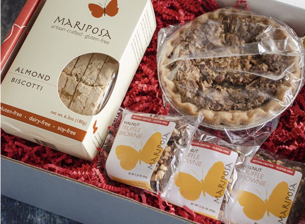 We all know what a treat it is to have a fantastic GF treat without having to bake it yourself. Mariposa Baking Company makes it easy with their various boxes of GF treats, including their Nutty Holidays set. Get one for yourself or send one to a GF friend to enjoy a delish 6-inch pecan pie, box of almond biscotti, and three walnut brownies all of which arrives in a beautiful Mariposa gift box. $47.50 plus shipping. BUY IT HERE