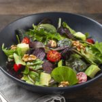 This salad reminisces the simply soulful flavor of legendary San Francisco jazz singer Faith Winthrop’s cooking. Add a smidge of crushed garlic to the dressing if desired, but definitely toast extra walnuts; stored at room temperature in a tightly sealing container, they’re great to grab and use anytime.