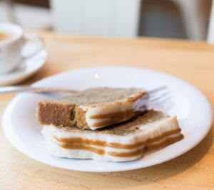 This pound cake is unusual and, from my point of view, delicious. There is no sugar in a mix that includes rum and coffee granules. The sweetness is in the frosting, and combined with the cake, is heaven in a mouthful. To be honest it is not for everyone’s taste, but for those whose taste it is, they love it.
