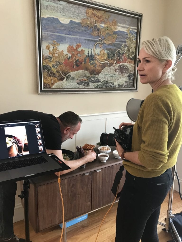 For photo shoots, we use every available surface, depending on the look we’re after. Here, GFF recipe developer Eric Lundy styles a brunch buffet for photographer Aubrie Pick to shoot.