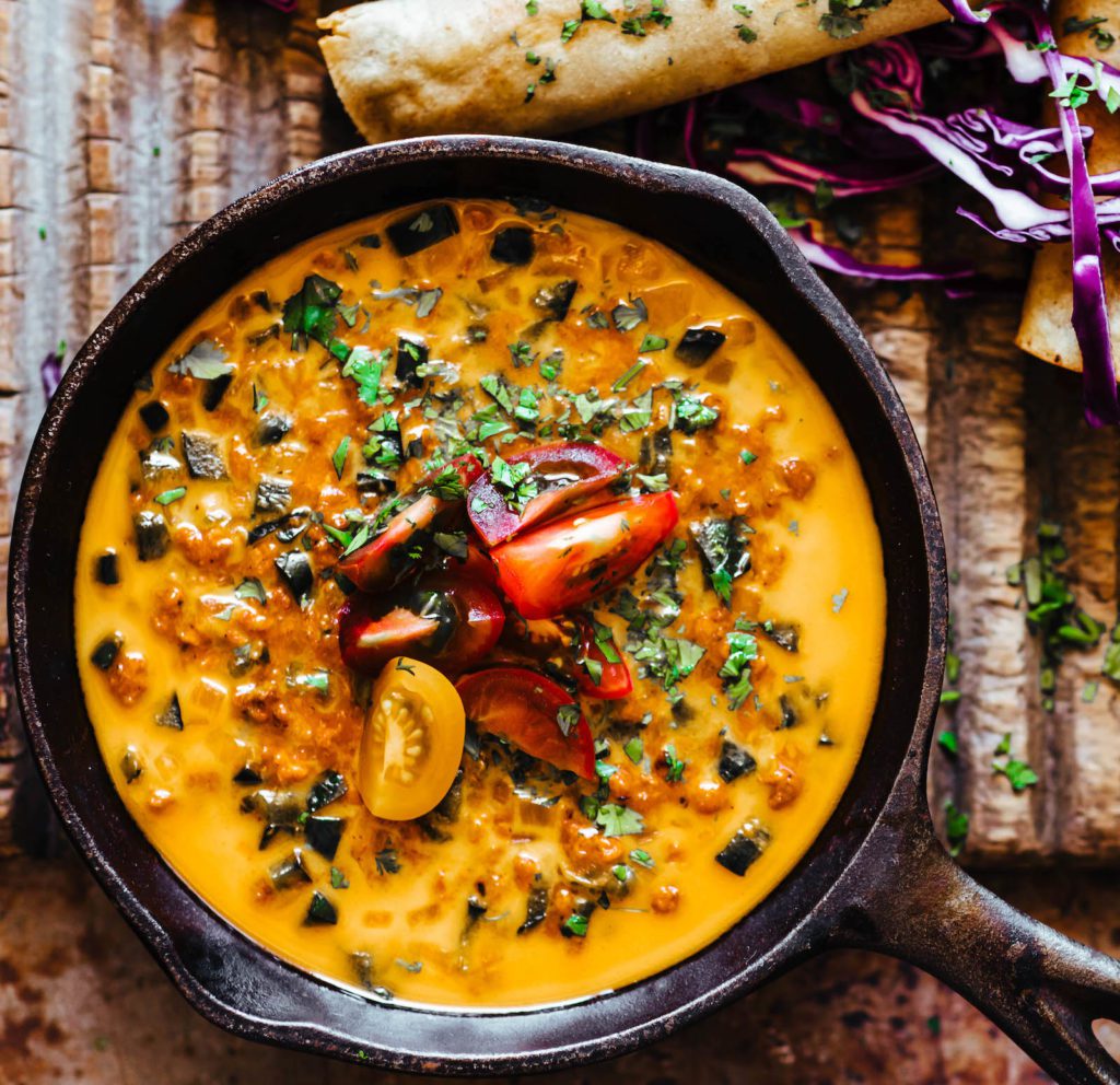 Cozy, comforting, and nourishing vegan chili? Heck yes! This recipe can be made a day ahead for easy entertaining. Dried beans will need to soak for at least 6 hours, but you can substitute rinsed canned beans if time is of the essence. Serve alongside your favorite toppings for a festive build-your-own experience! Get the recipe