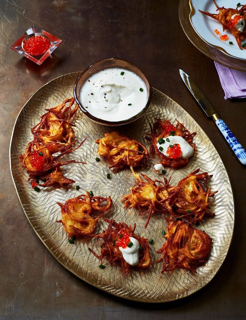 ou can’t get any better (or crispier!) than this recipe for the ultimate Hanukkah latkes. Follow our tips for success here and you can’t miss. Serve them with (dairy-free) horseradish cashew cream and caviar, as we do here, or offer them alongside a bowl of homemade or store-bought applesauce. Once you master the basics, try our creative potato pancake recipes. Get the recipe