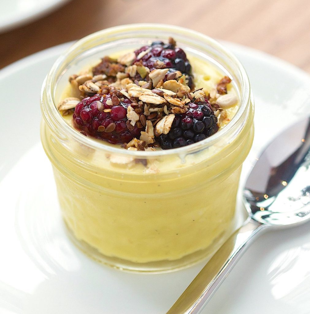 I make this a lot this time of year. It’s great on its own but even better with berries on top. Sometimes, I’ll even mix in some unsweetened cocoa powder for a wholesome chocolate treat! Get the recipe