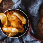 Double-frying thinly sliced potatoes in two different oil temperatures results in puffy, crispy, totally addictive homemade gluten free potato chips.