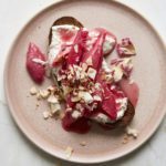 Orange-Honey Poached Rhubarb with Cashew Cream on Toast