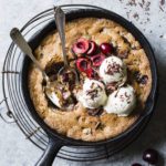 This chocolate cherry skillet cookie by our beloved gluten-free baking friend Alanna Taylor-Tobin is so chewy, gooey, fluffy, and delicate, no one will believe it’s gluten- and dairy-free.