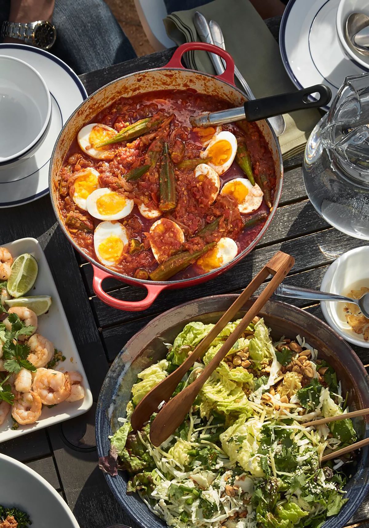 While eggs and okra are the headliner ingredients of this spectacular gluten free curry recipe adapted from the Burma Superstar cookbook, don’t overlook the virtues of the simple sauce. Made from slow-cooked shallots, garlic, and tomatoes and a generous amount of turmeric, it’s so delicious that the staff at Burma Love spoons it alone over rice. In Myanmar, cooks fry hard-boiled eggs to help them hold their shape in this classic curry, but not everyone is a fan of the ensuing rubbery texture. Frying isn’t actually necessary: adding the hard-boiled eggs at the end preserves their shape just fine.