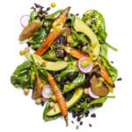 Sometimes salads go beyond a delicious tangle of greens and dressing and become a transcendent eating experience. This salad by our editor Eric Lundy is one of those rare opportunities. Never mind that it’s so wholesome, you feel better about yourself just eating it. It’s the riotous color, diversity of textures, and vibrant flavors that make this a salad our team has repeatedly craved since first sinking our teeth into it. The anchor to its brilliance is a tangy-creamy-savory and vibrant yellow tahini and turmeric dressing. Caramelized, earthy root vegetables, garbanzo beans, and leftover rice add lip-smacking substance. Avocado chunks lend creamy intermissions, and toasted nuts and radish add toothsome pleasure. But here’s where it becomes even more fun: you can compose this salad of pretty much any combo of greens, roasted vegetables, seeds, and other kitchen remnants you have around.